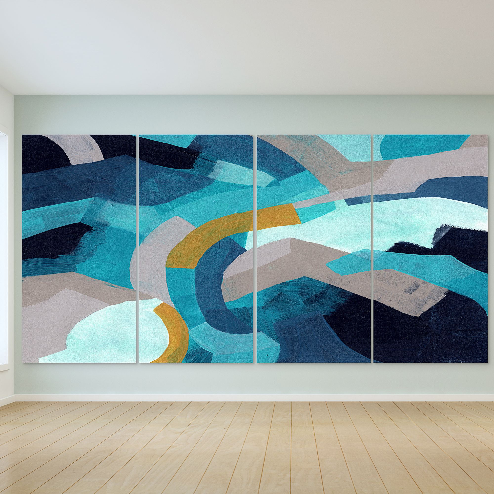 Puzzle Blues ABCD 144" Wide 4-Piece Glass Graphic Wall Art