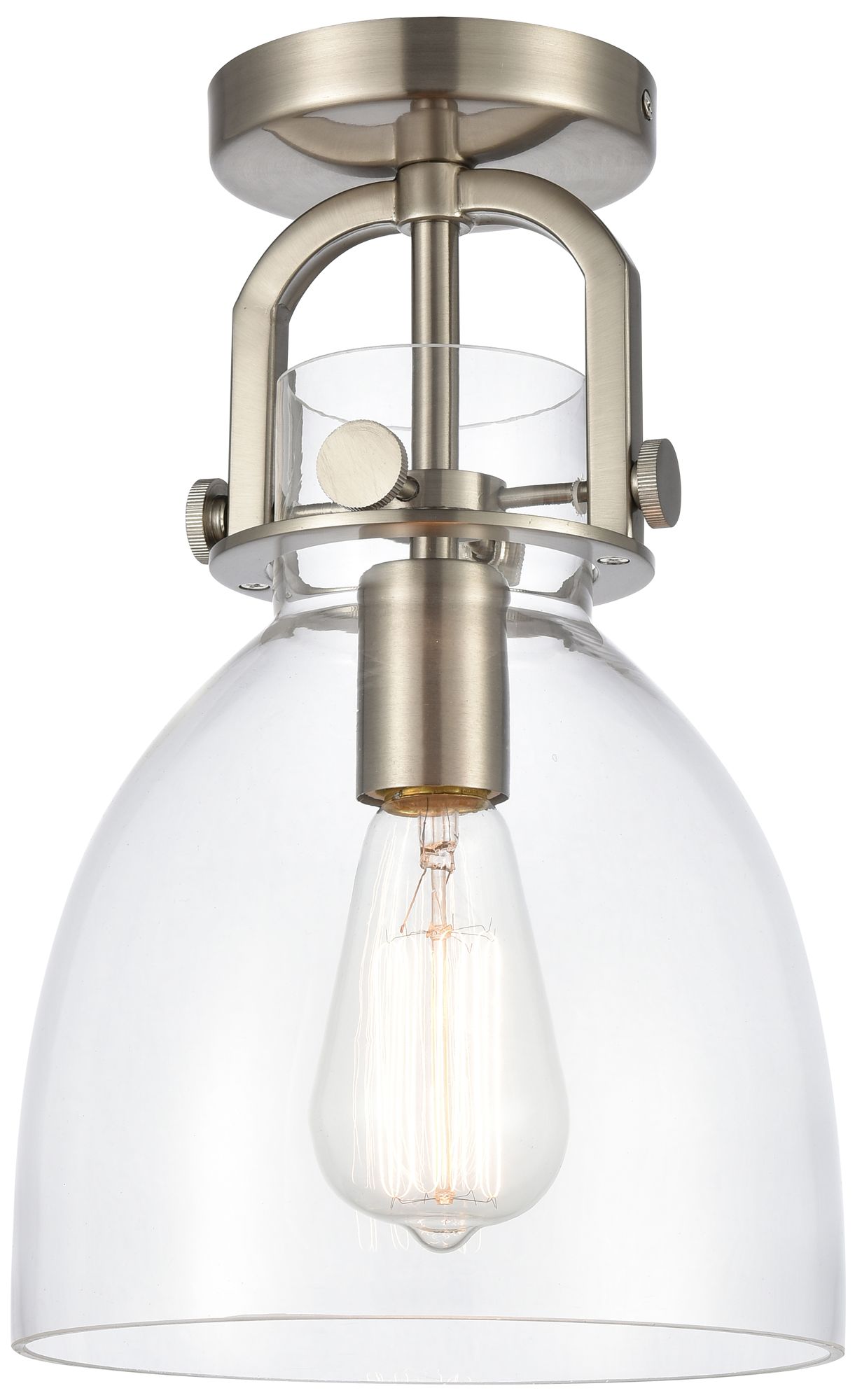 Newton Bell 8" LED Flush Mount - Brushed Satin Nickel - Clear Shade