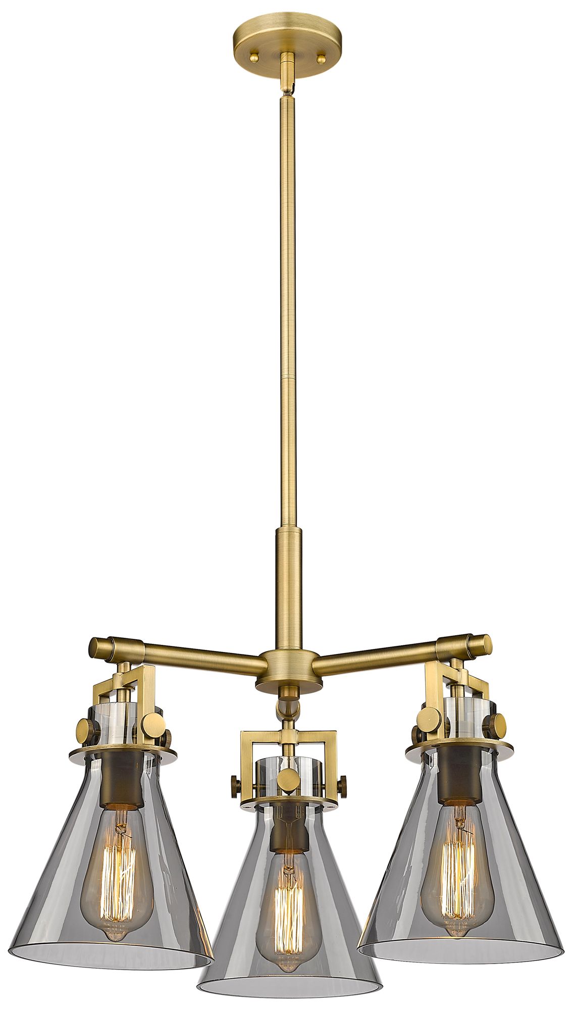 Newton Cone 20.38"W 3 Light Brushed Brass Stemmed Pendant w/ Smoke Sha