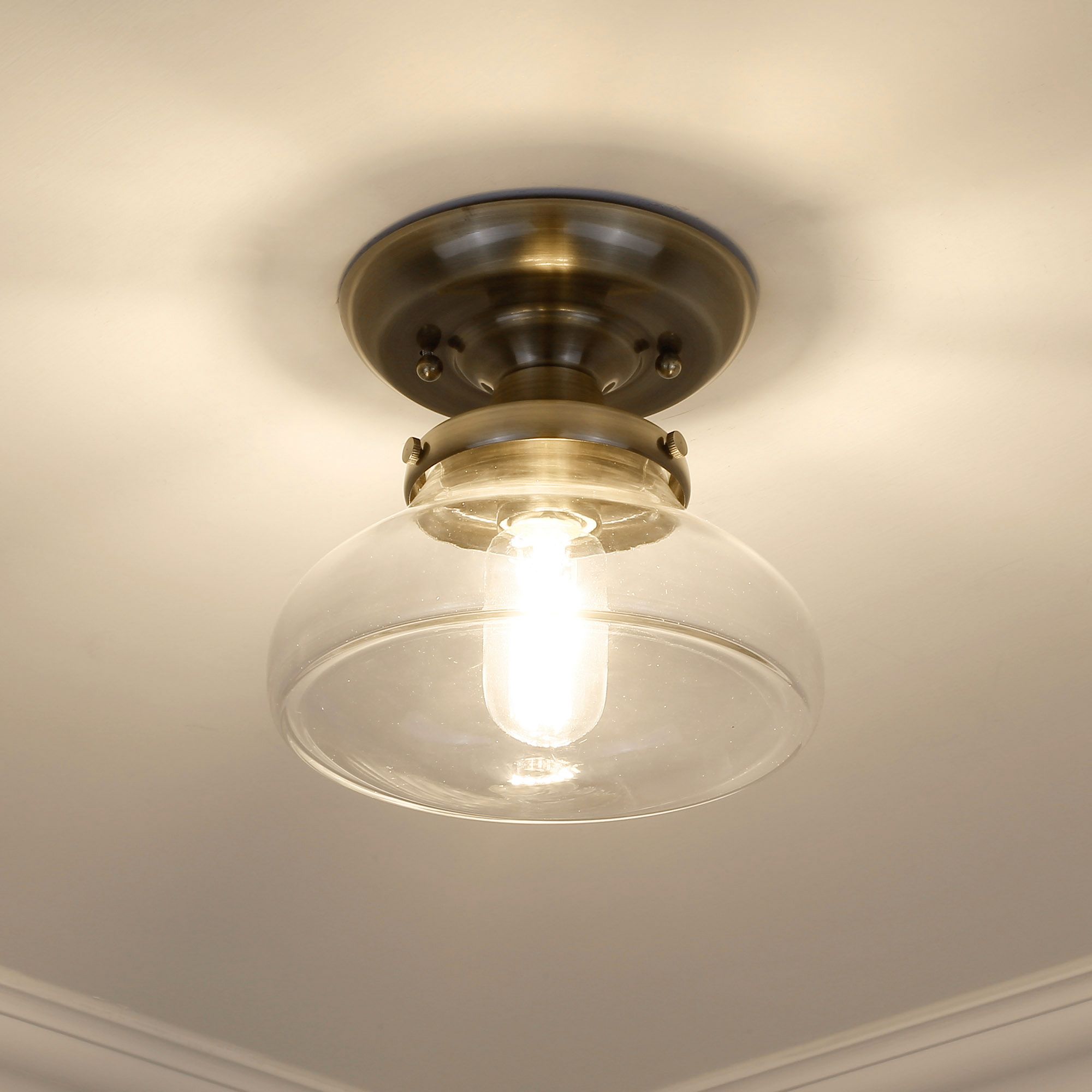 Nash 8" Wide Aged Brass 1-Light Semi-Flush With Clear Glass