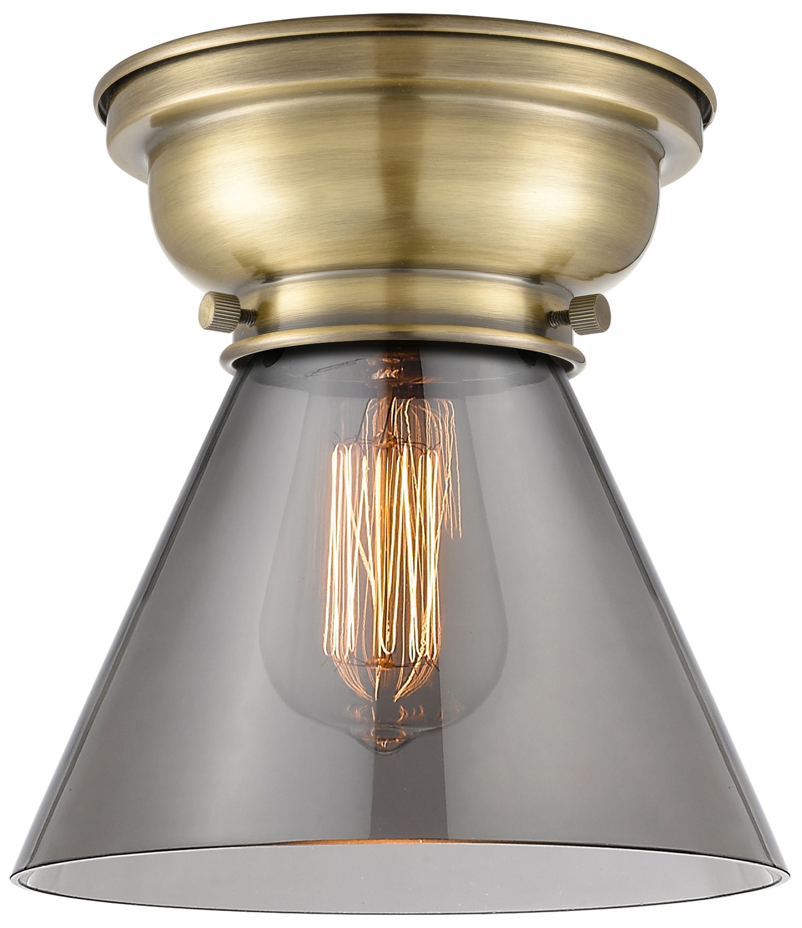 Aditi Cone 8" Antique Brass Flush Mount w/ Plated Smoke Shade