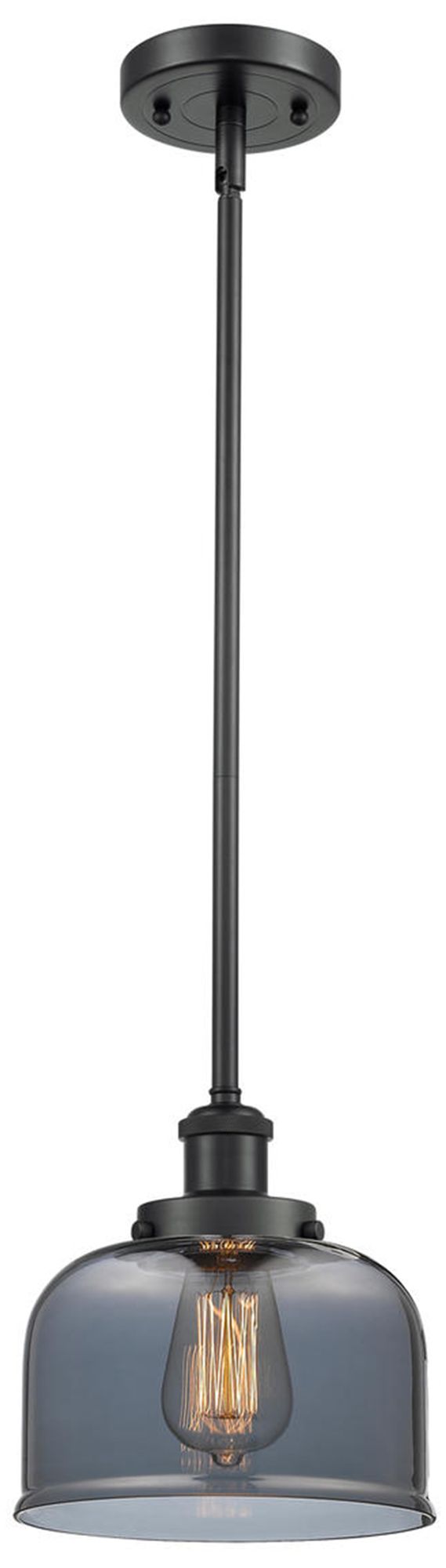 Ballston Urban Bell 10" Black LED Stem Hung Mini Pendant w/ Smoke Shad