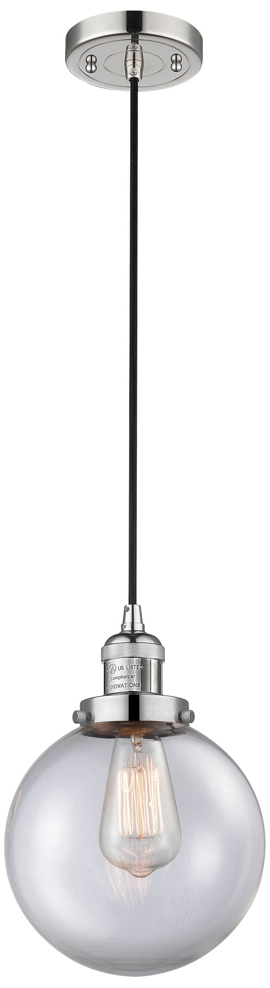 Franklin Beacon 8" Wide Polished Nickel Corded Mini Pendant w/ Clear S