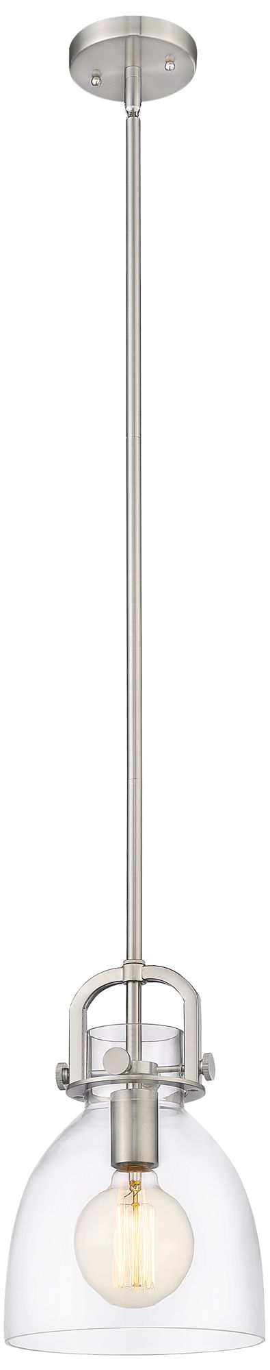 Newton Bell 8" LED Mini Pendant - Brushed Satin Nickel - Clear