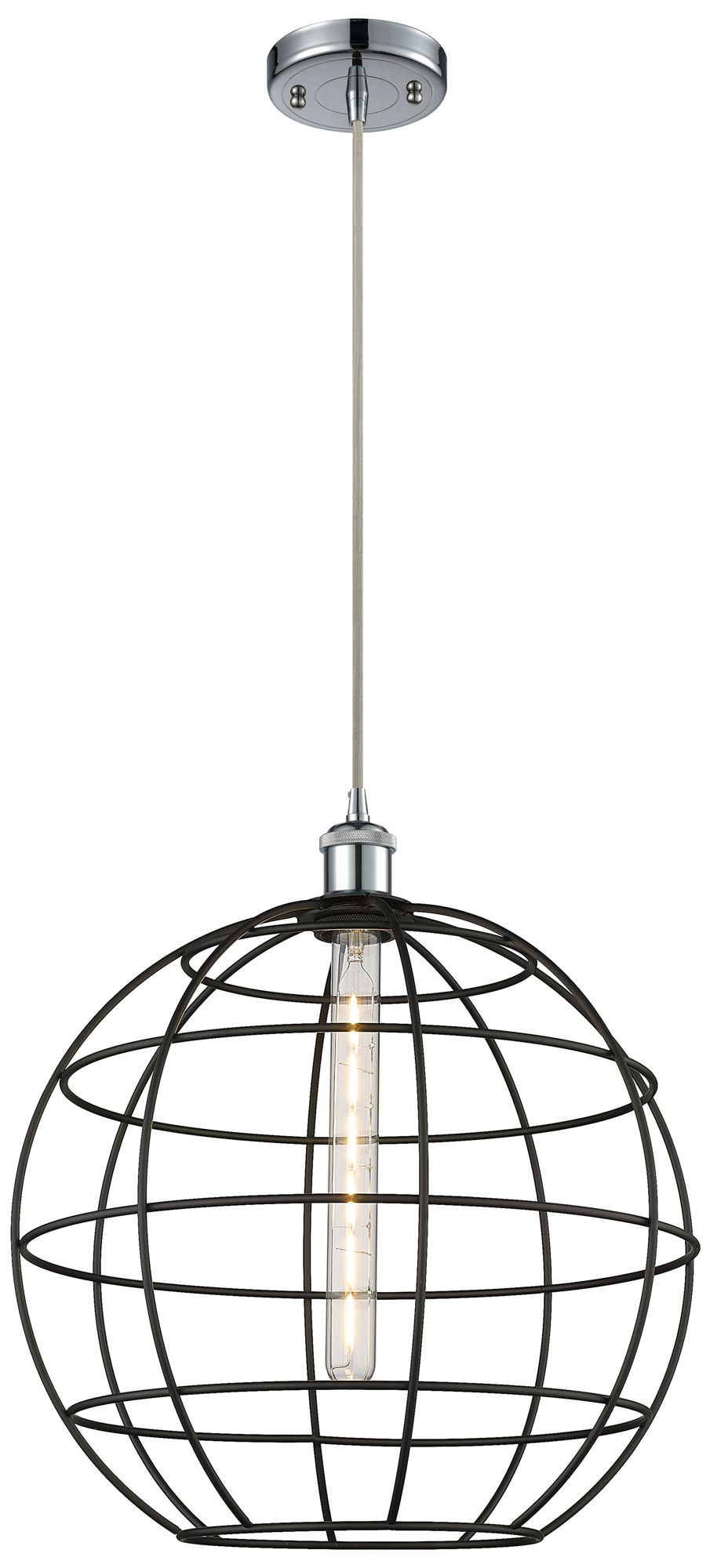 Ballston Lake Placid 16"W Polished Chrome Corded Pendant With Black Sh