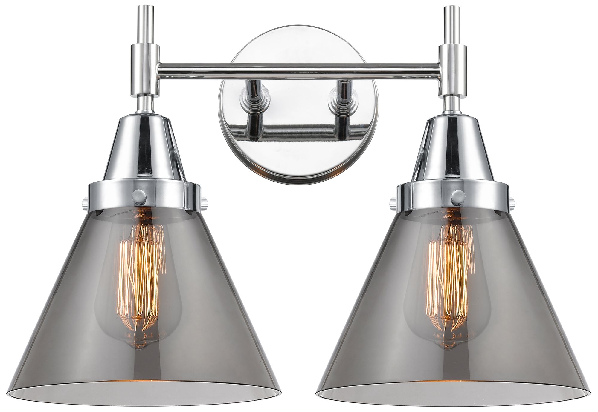 Caden Cone 16.75"W 2 Light Polished Chrome Bath Light w/ Smoke Shade
