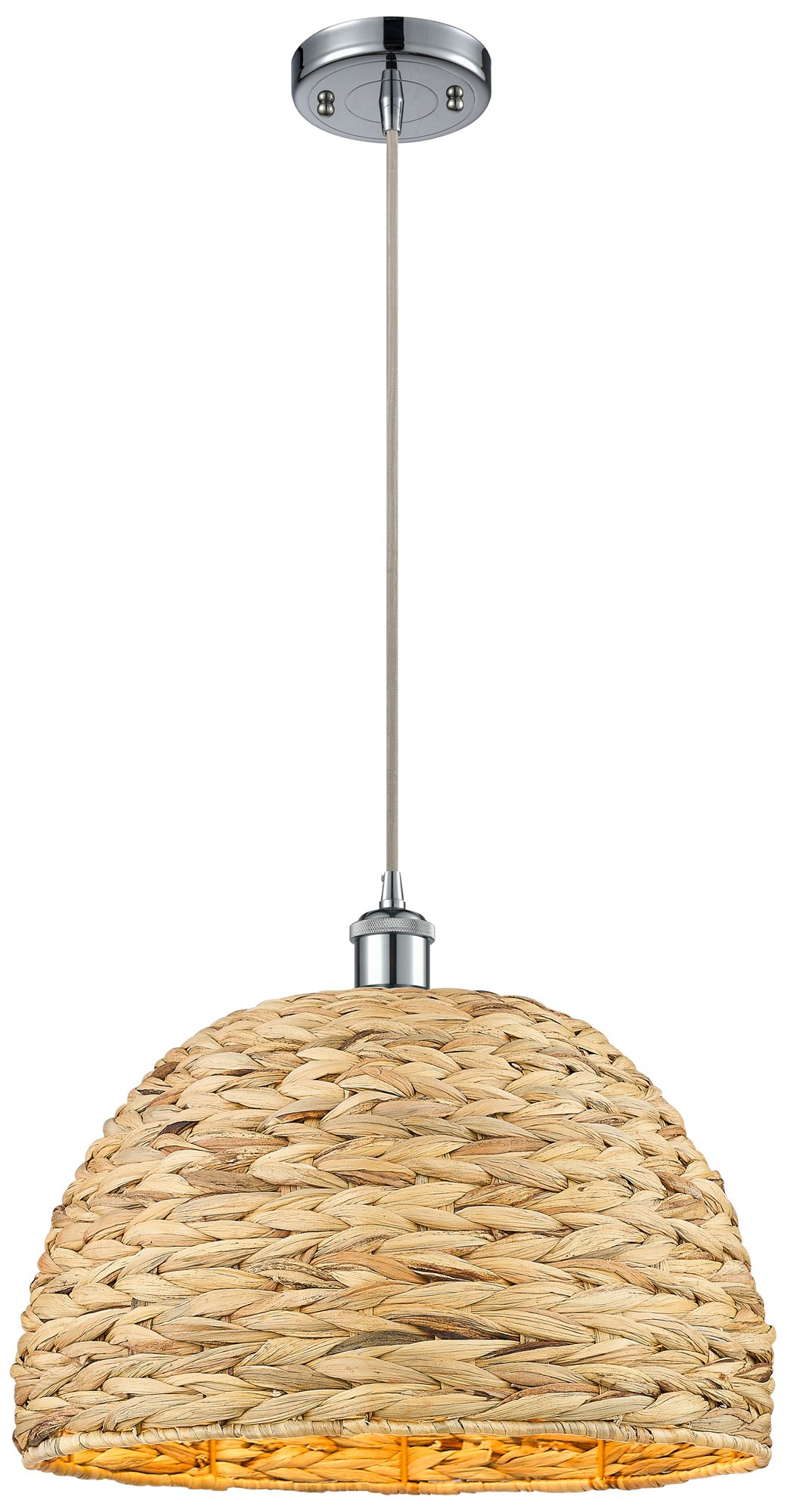 Woven Rattan 15.75" Wide Polished Chrome Corded Pendant With Natural S