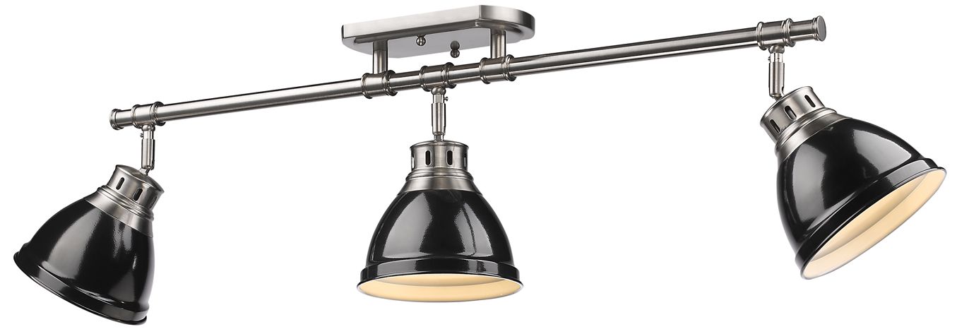 Duncan 35 3/8" Wide Pewter 3-Light Semi-Flush With Black Shades