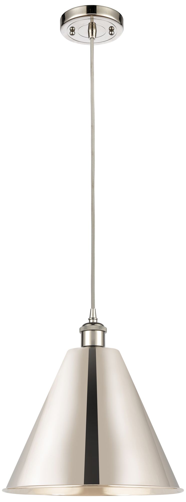 Ballston Cone 12"W Polished Nickel Corded Mini Pendant w/ 12" Sha