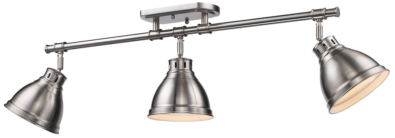 Duncan 35 3/8" Wide Pewter 3-Light Semi-Flush With Pewter Shades