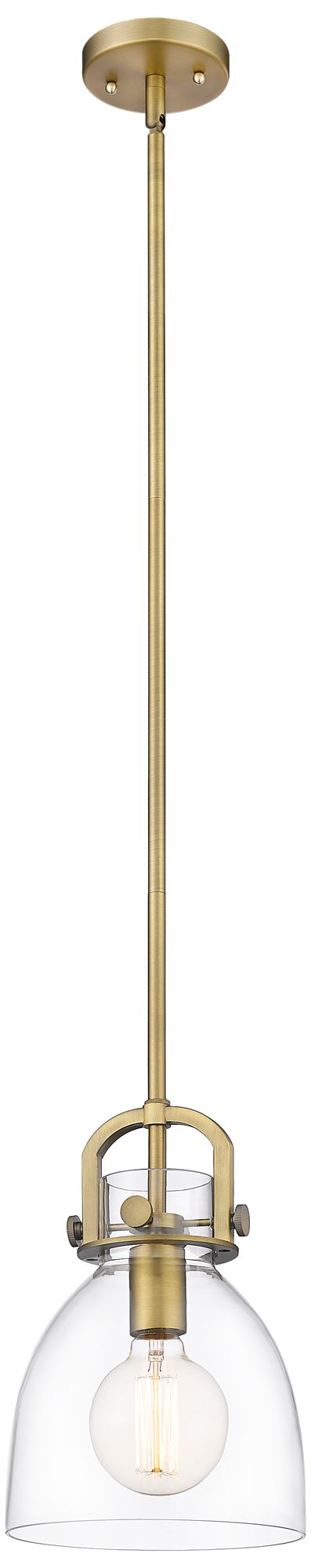 Newton Bell 8" Stem Hung LED Mini Pendant - Brushed Brass - Clear Shad