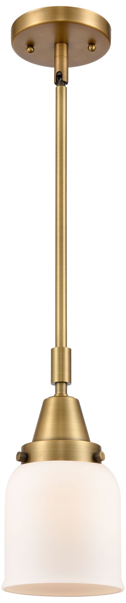 Caden Bell 5" Wide Brushed Brass Stem Hung Mini Pendant w/ White Shade