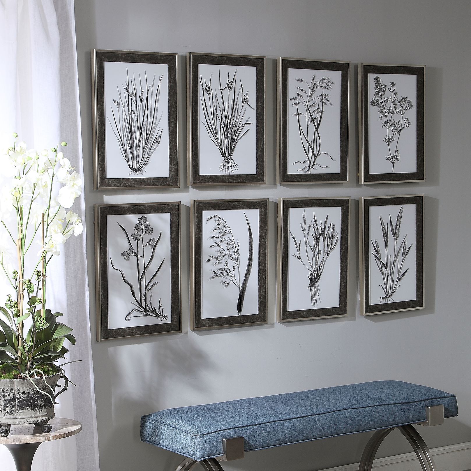 Classic Botany 21" High 8-Piece Framed Printed Wall Art Set