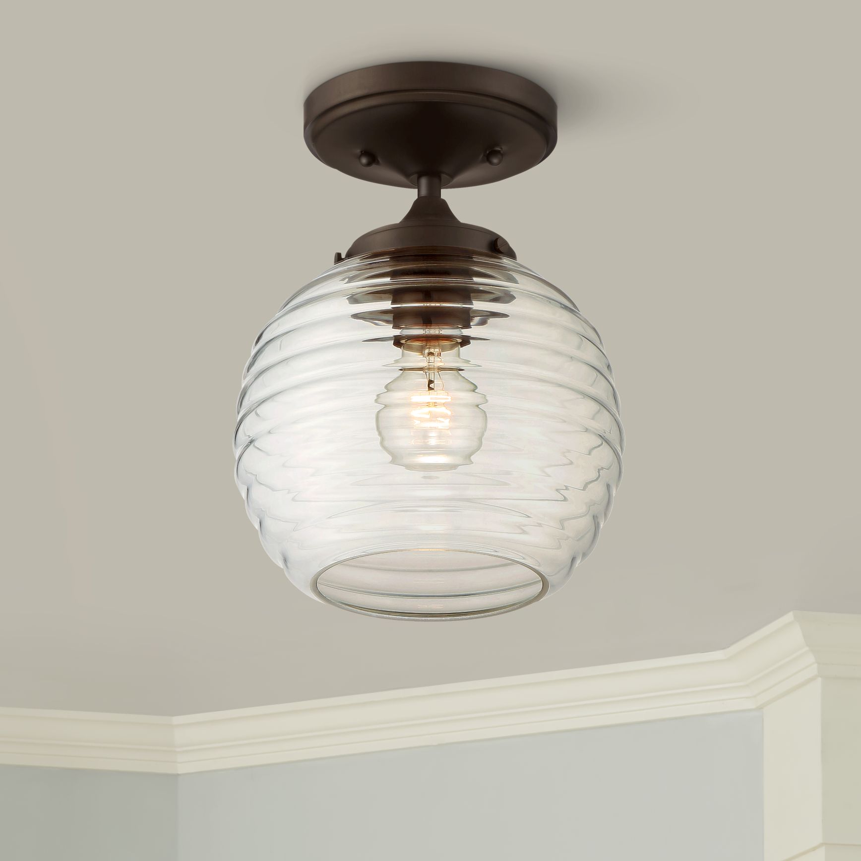 Maja 8 1/4"W Honey Comb Ribbed Glass Bronze Ceiling Light