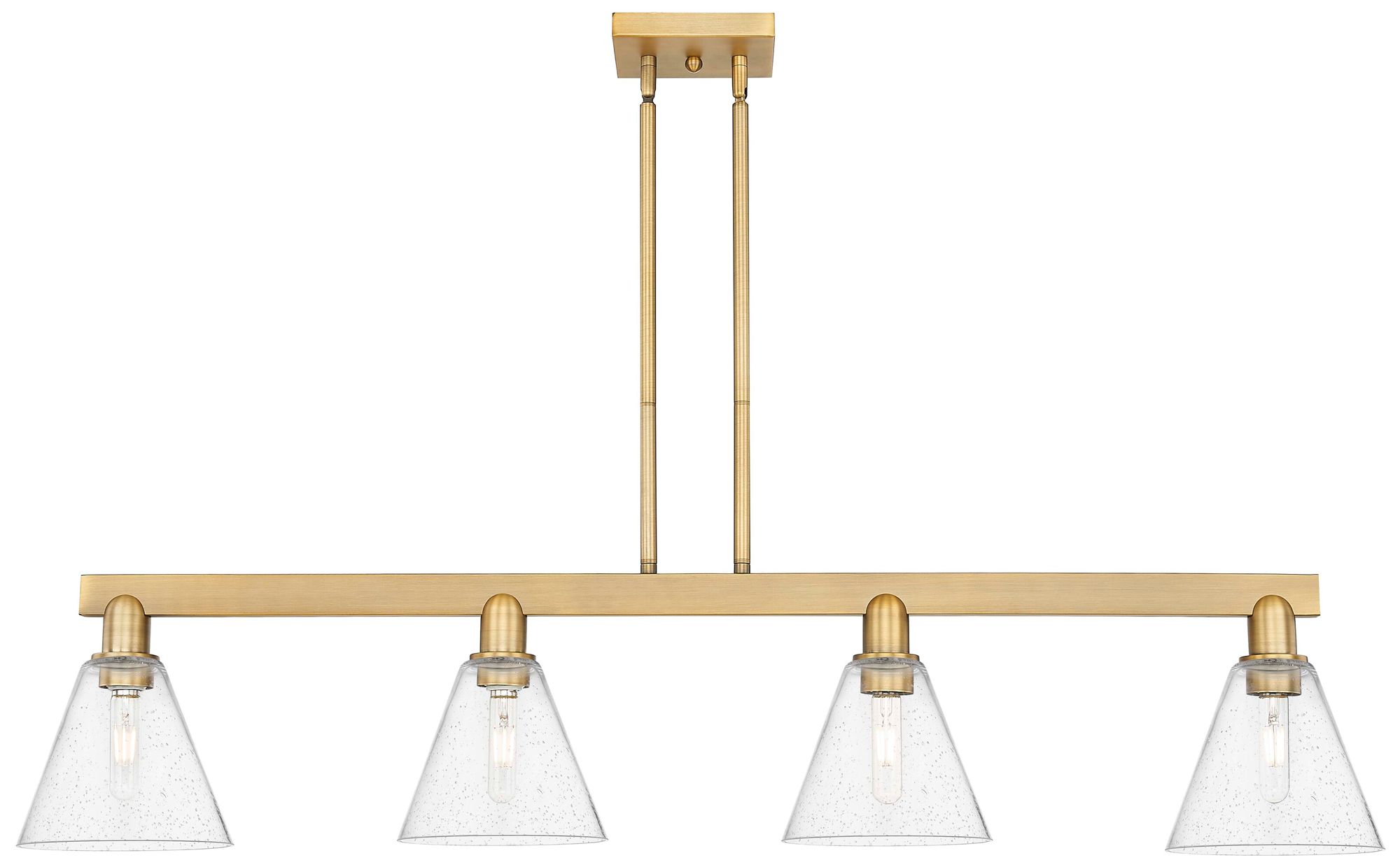 Arcadia Berkshire 51"W 4-Lt Brushed Brass Stem Island Light w/ Seedy Shade