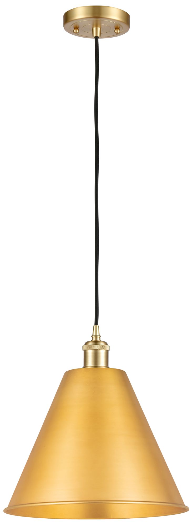 Ballston Cone 12"W Satin Gold Corded Mini Pendant w/ 12" Shade Bl
