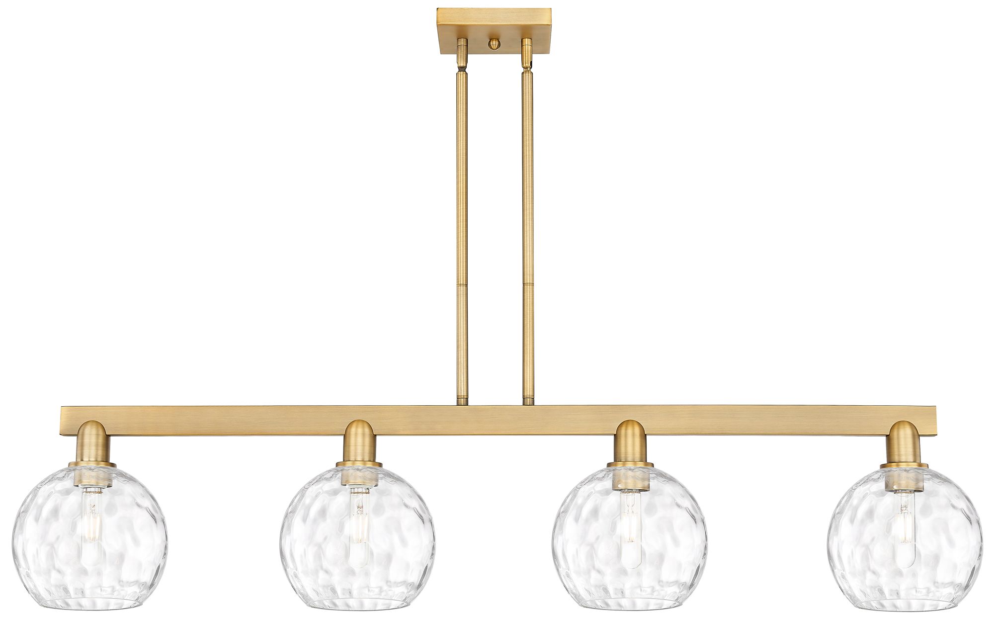 Arcadia Athens 51"W 4-Lt Brush Brass Stem Island Light w/ Water Glass Shade