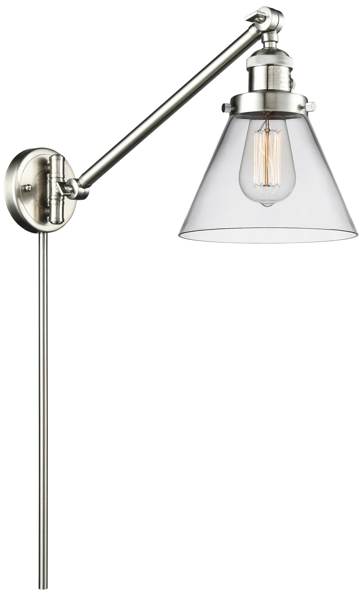 Franklin Restoration Cone 8" Brushed Nickel LED Swing Arm With Clear S