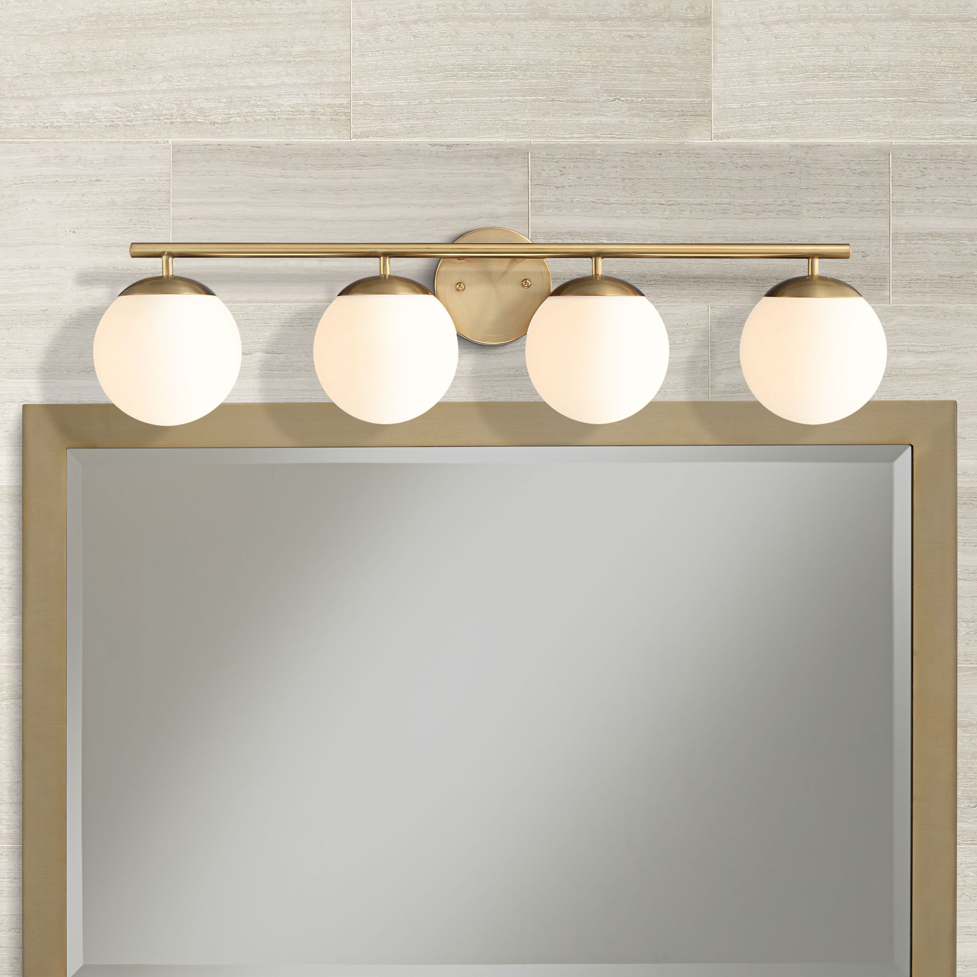Possini Euro Meridian 31 1/2" Gold and White Glass 4-Light Bath Light