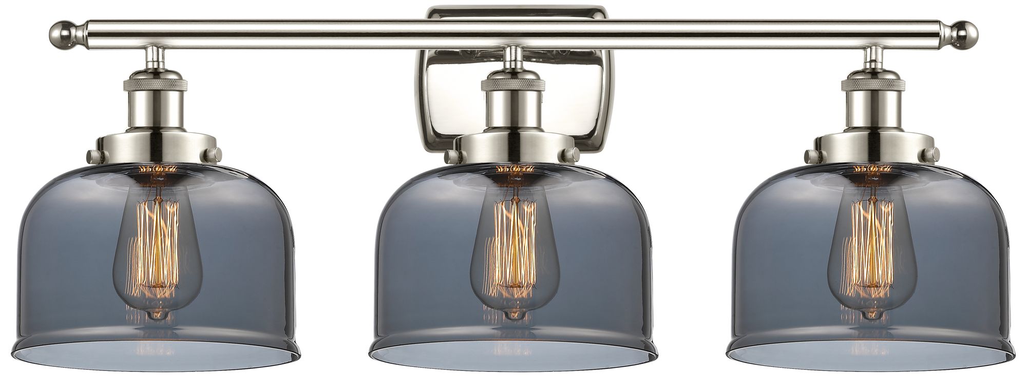 Ballston Urban Bell 28" 3 Light Nickel Bath Light w/ Smoke Shade