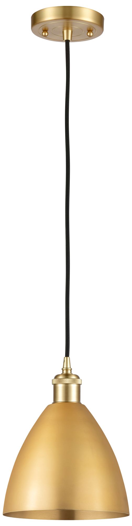Ballston Metal Bristol 7.5"W Satin Gold Corded Mini Pendant w/ Black S