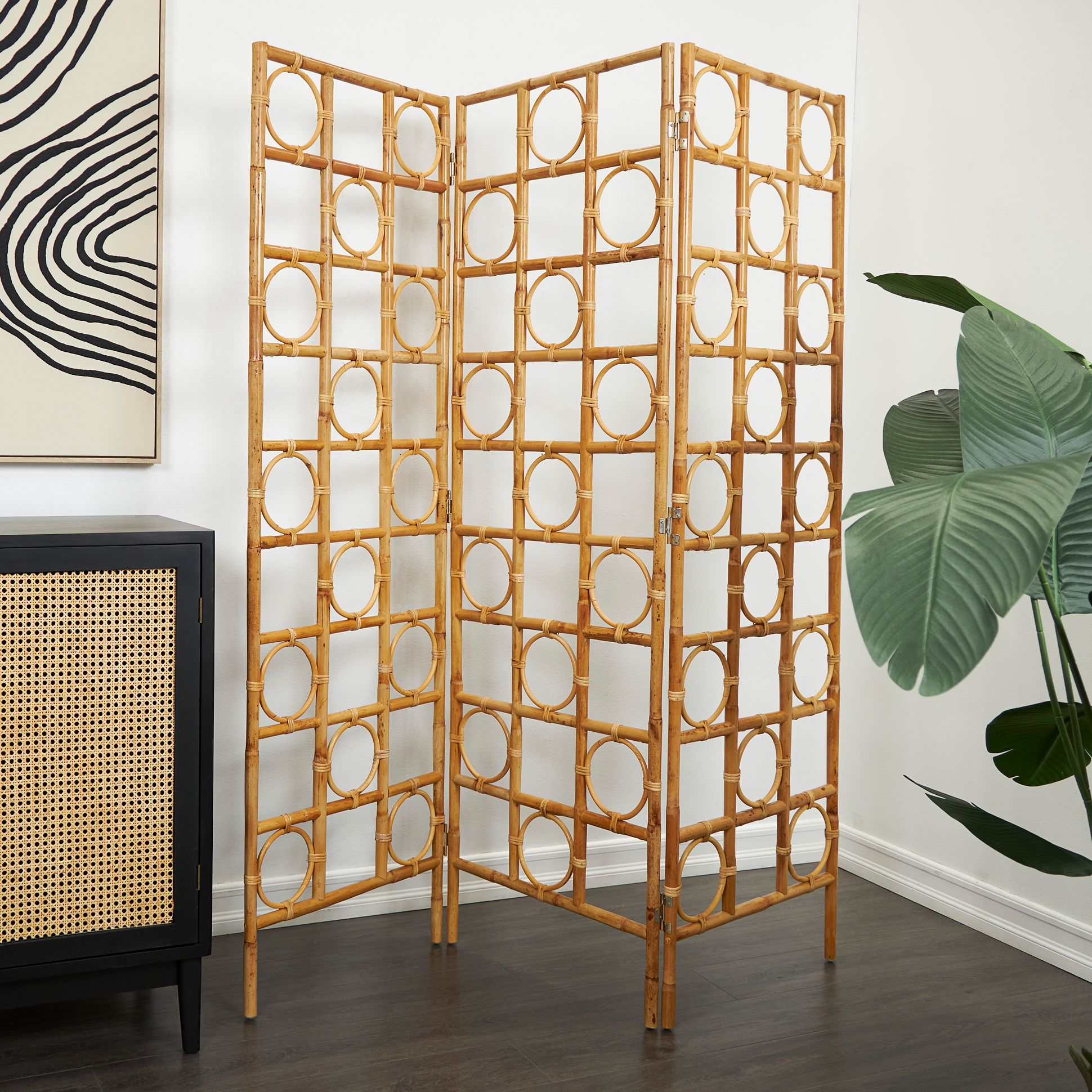 Bradley Oiled Brown Rattan 71"H 3-Panel Room Divider Screen