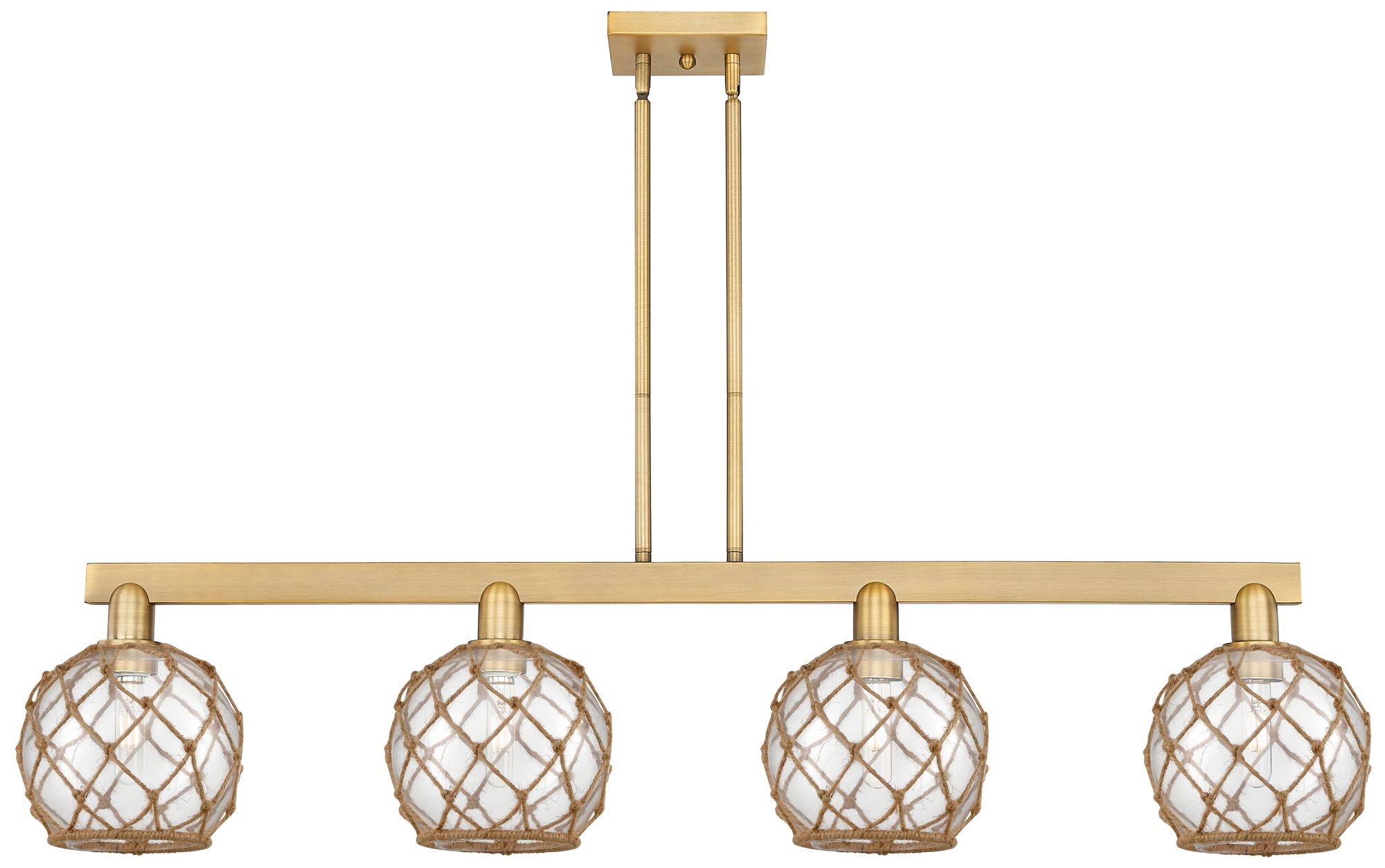 Arcadia Farmhouse 51"W 4-Lt Brush Brass Stem Island w/ Clear Brown Shade