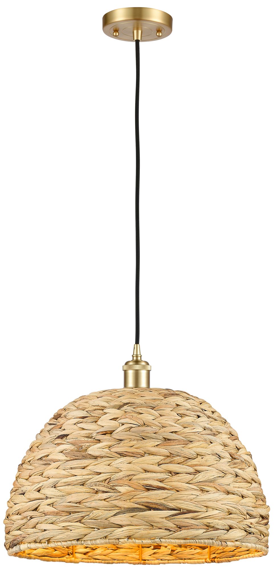 Woven Rattan 15.75" Wide Satin Gold Corded Pendant With Natural Shade