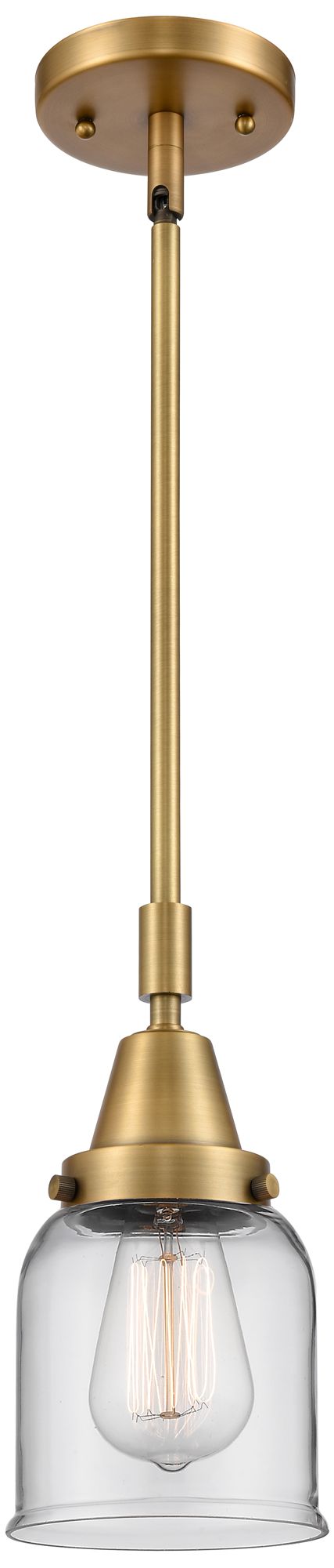 Caden Bell 5" Wide Brushed Brass Stem Hung Mini Pendant w/ Clear Shade