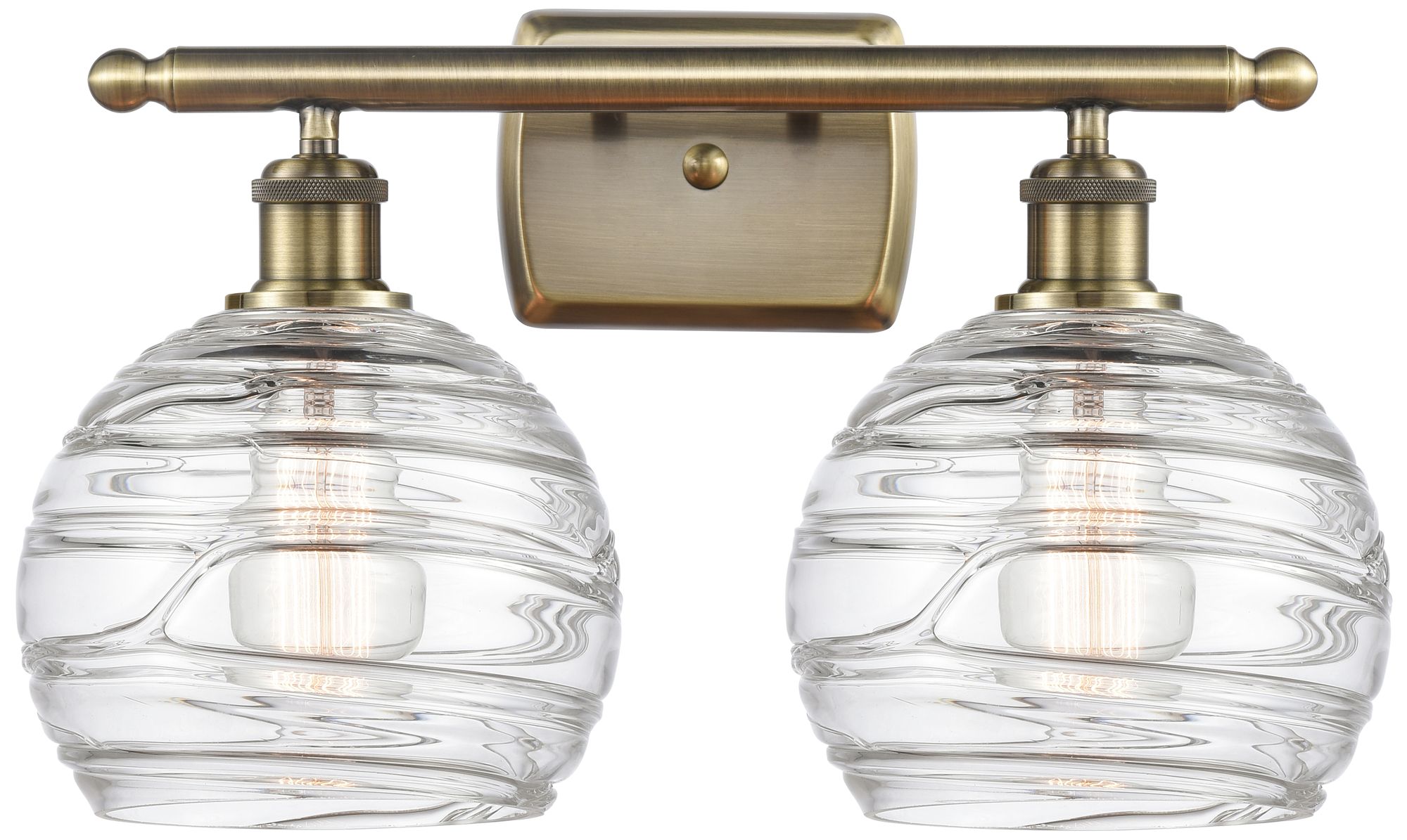Athens 18" 2-Light Antique Brass Bath Light w/ Clear Deco Swirl Shade
