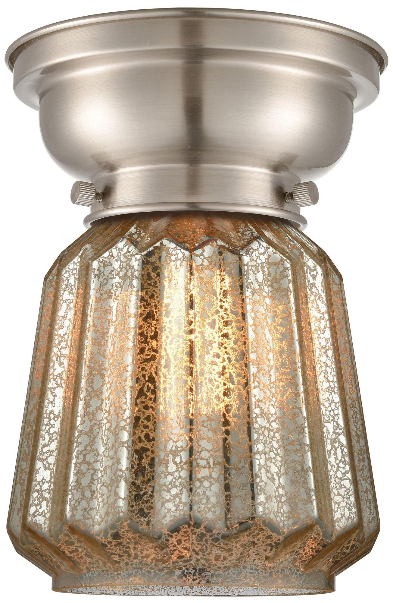 Aditi Chatham 7" Wide Brushed Satin Nickel Flush Mount With Mercury Sh