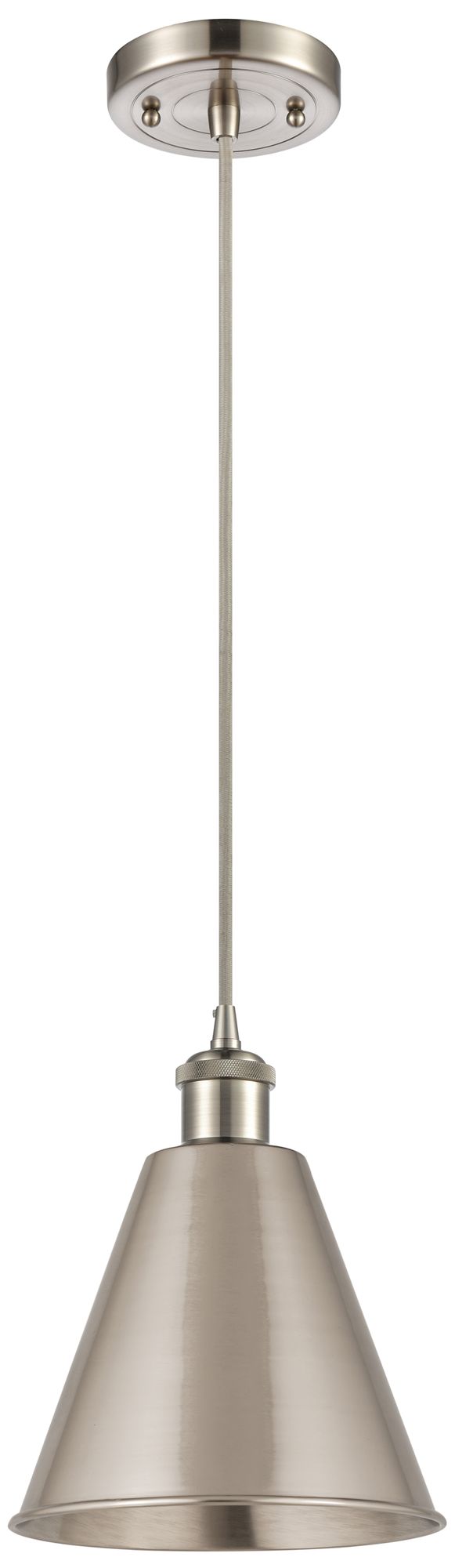 Ballston Cone 8"W Brushed Satin Nickel Corded Mini Pendant w/ 8"