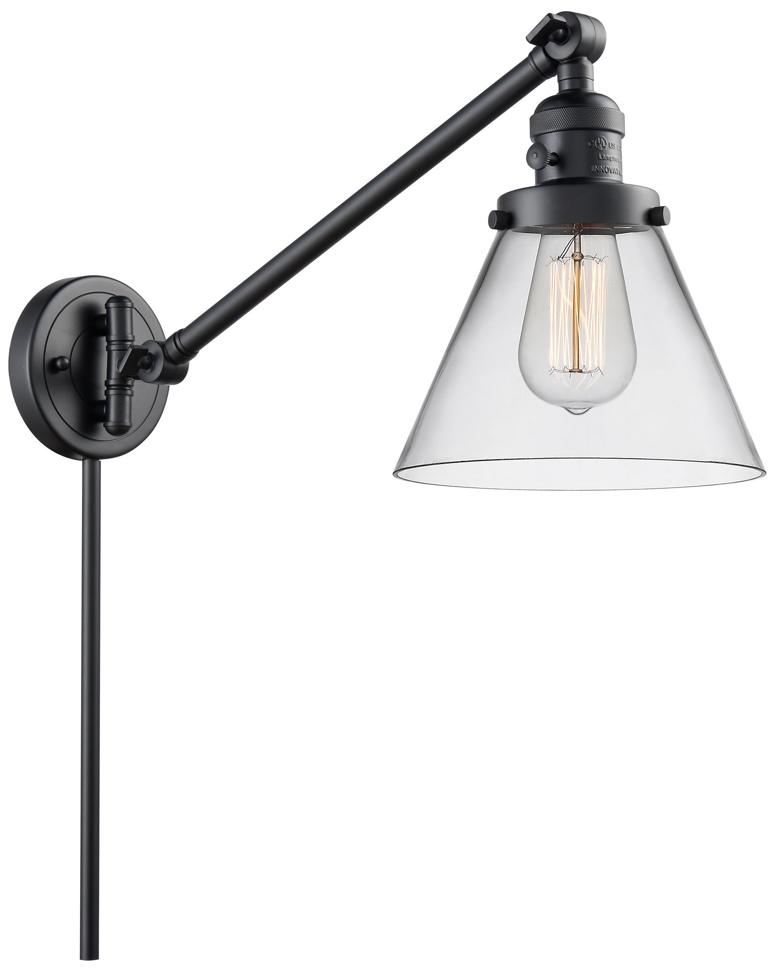 Franklin Restoration Cone 8" Matte Black LED Swing Arm With Clear Shad