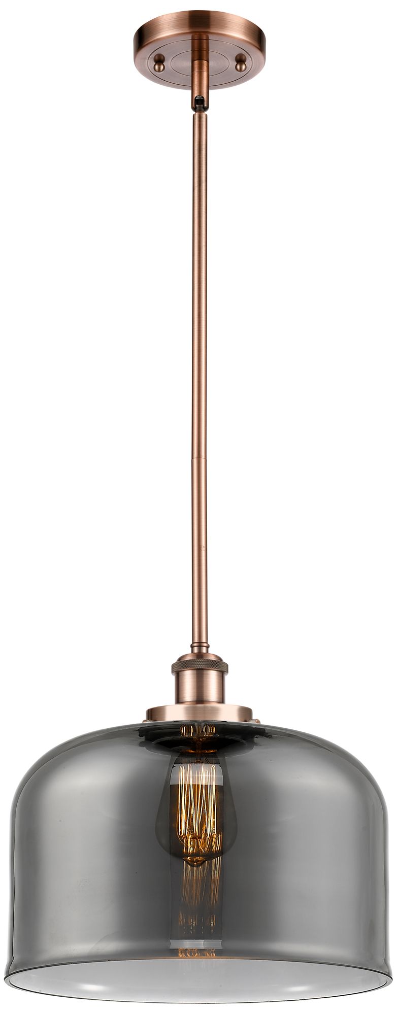 Ballston Urban Bell 12"W Copper Stem Hung Mini Pendant w/ Smoke Shade