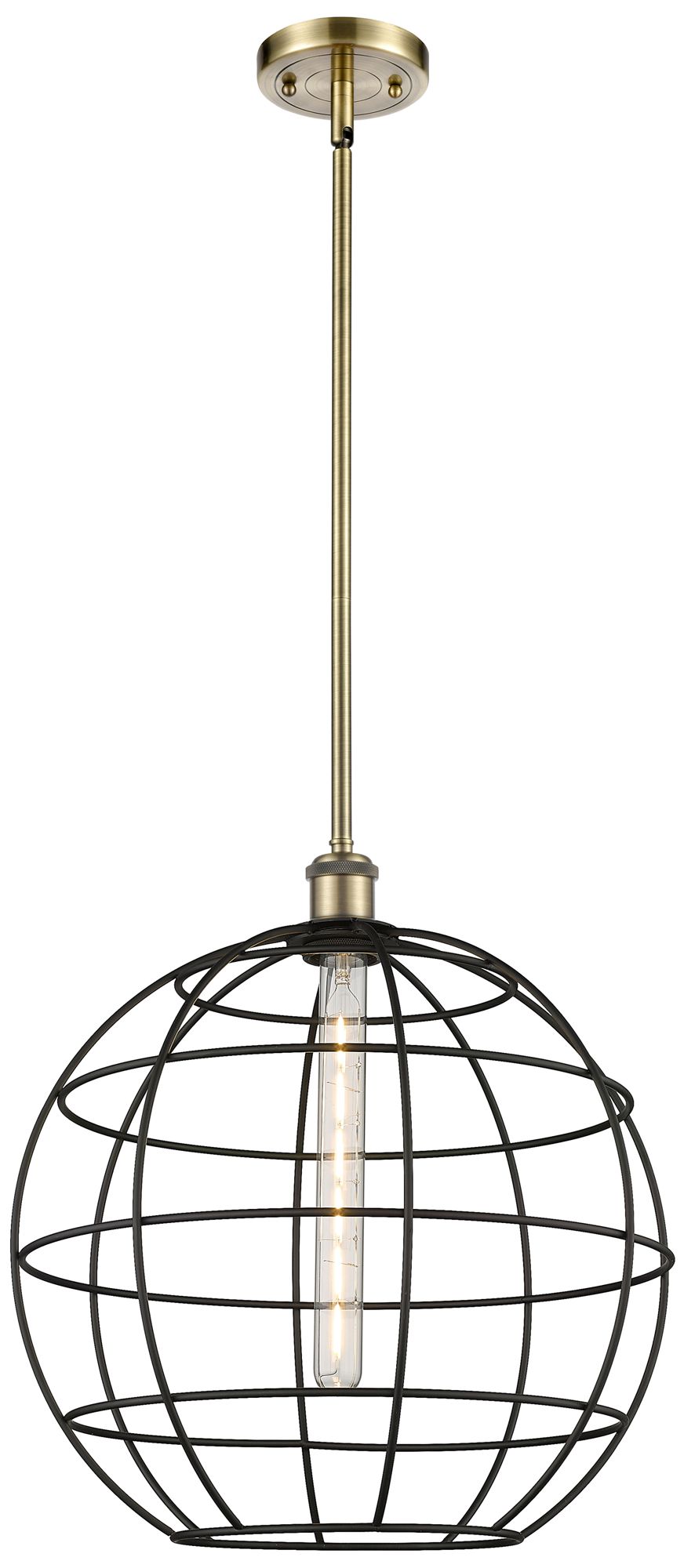Ballston Lake Placid 16"W Antique Brass Stem Hung Pendant With Black S