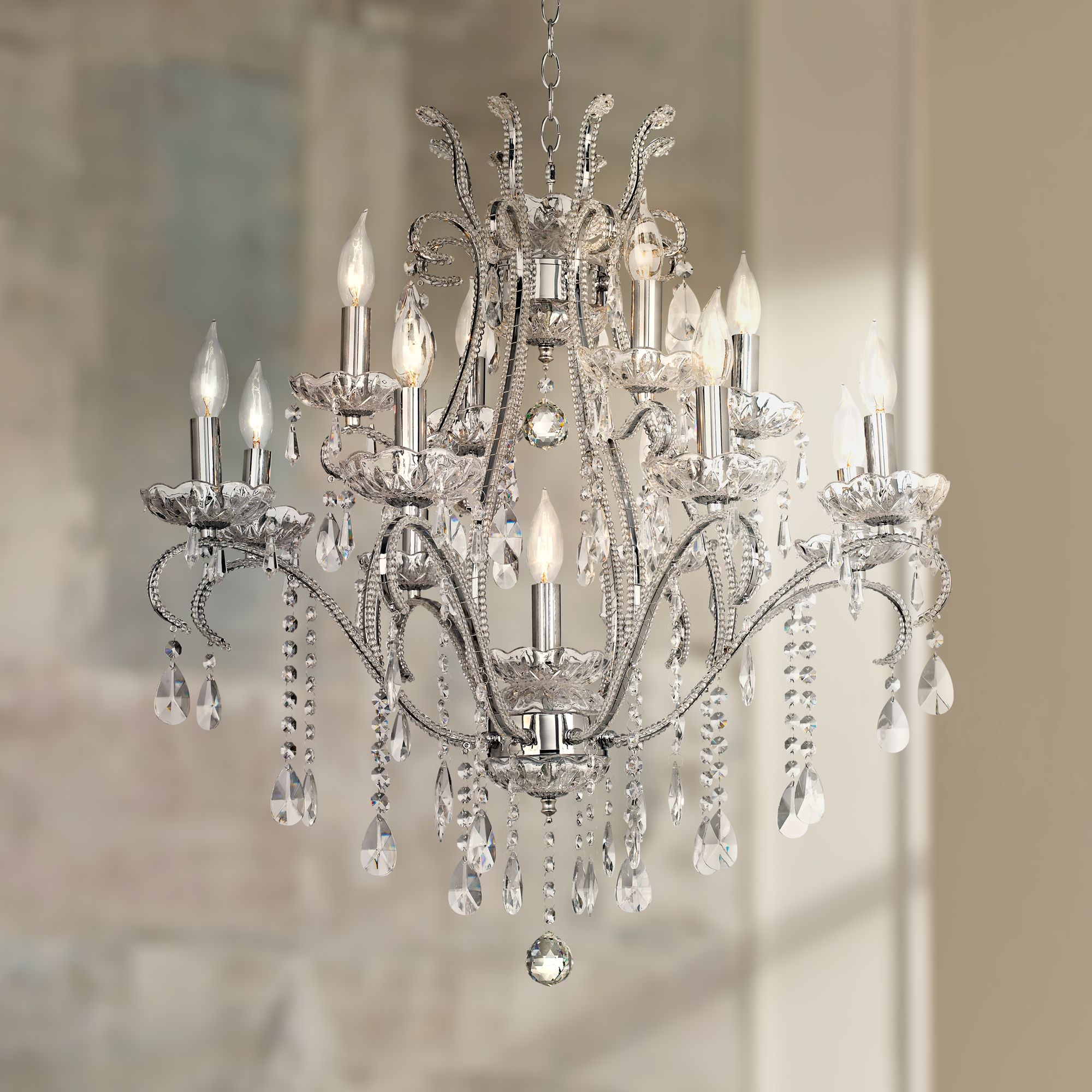 Chrome and Crystal 29" Wide 12-Light Chandelier
