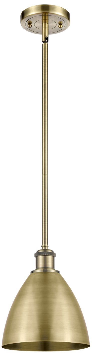 Metal Bristol 7.5"W Antique Brass LED Pendant With Antique Brass Shade