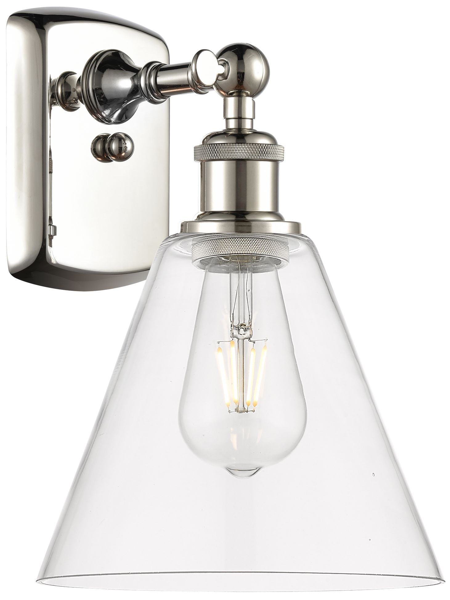 Berkshire Glass 8" Incandescent Sconce - Nickel Finish - Clear Shade