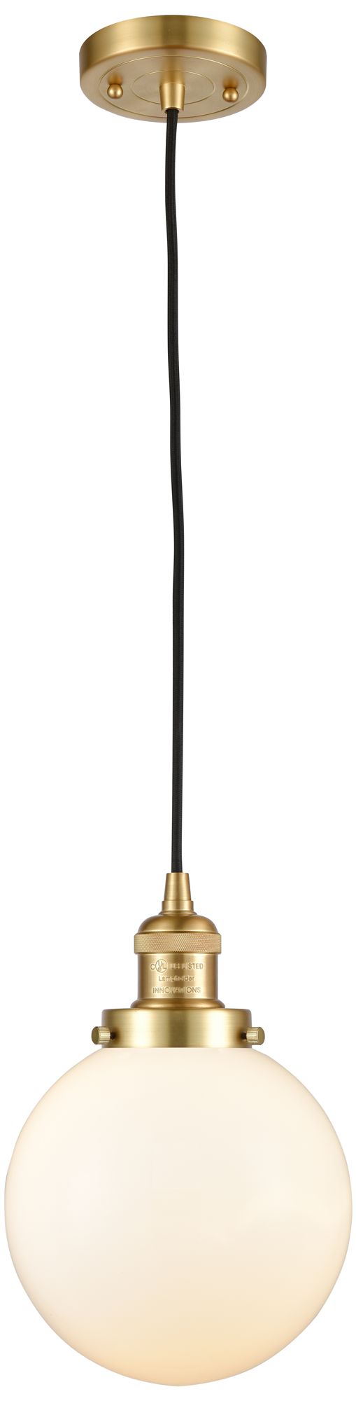 Franklin Beacon 8" Wide Satin Gold Corded Mini Pendant w/ Matte White