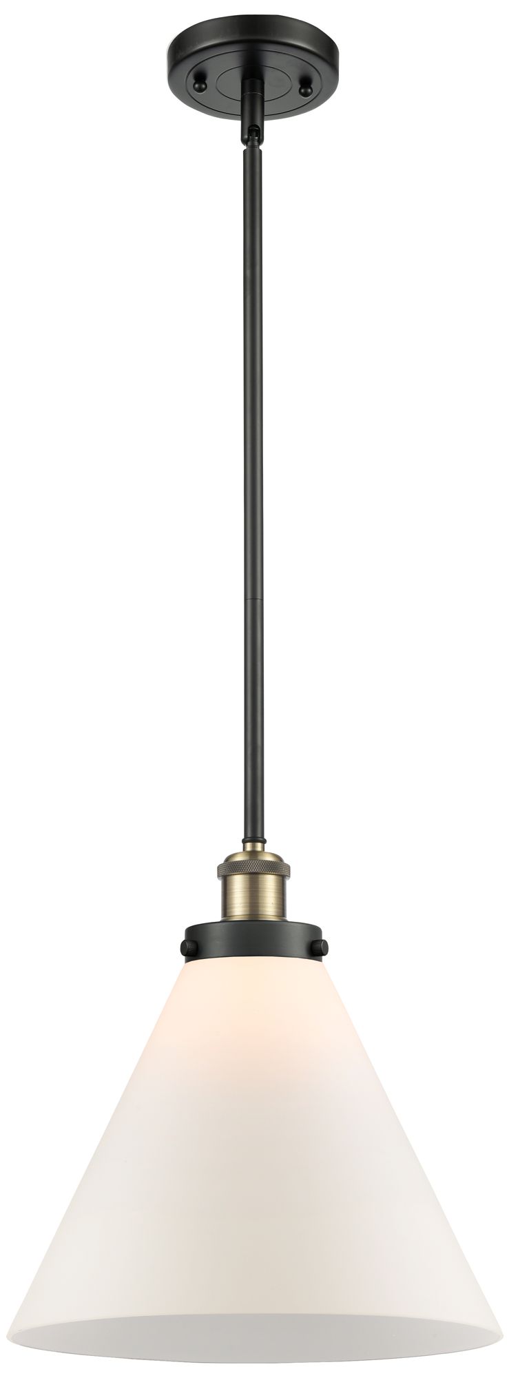 Ballston Urban Cone 12"W Black Brass Stem Hung Mini Pendant w/ White S