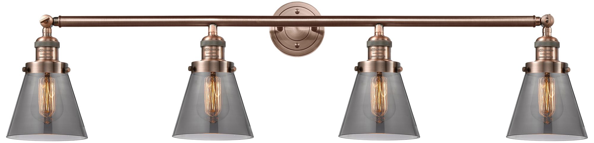 Cone 4 Light 42" LED Bath Light - Antique Copper - Plated Smoke Shade