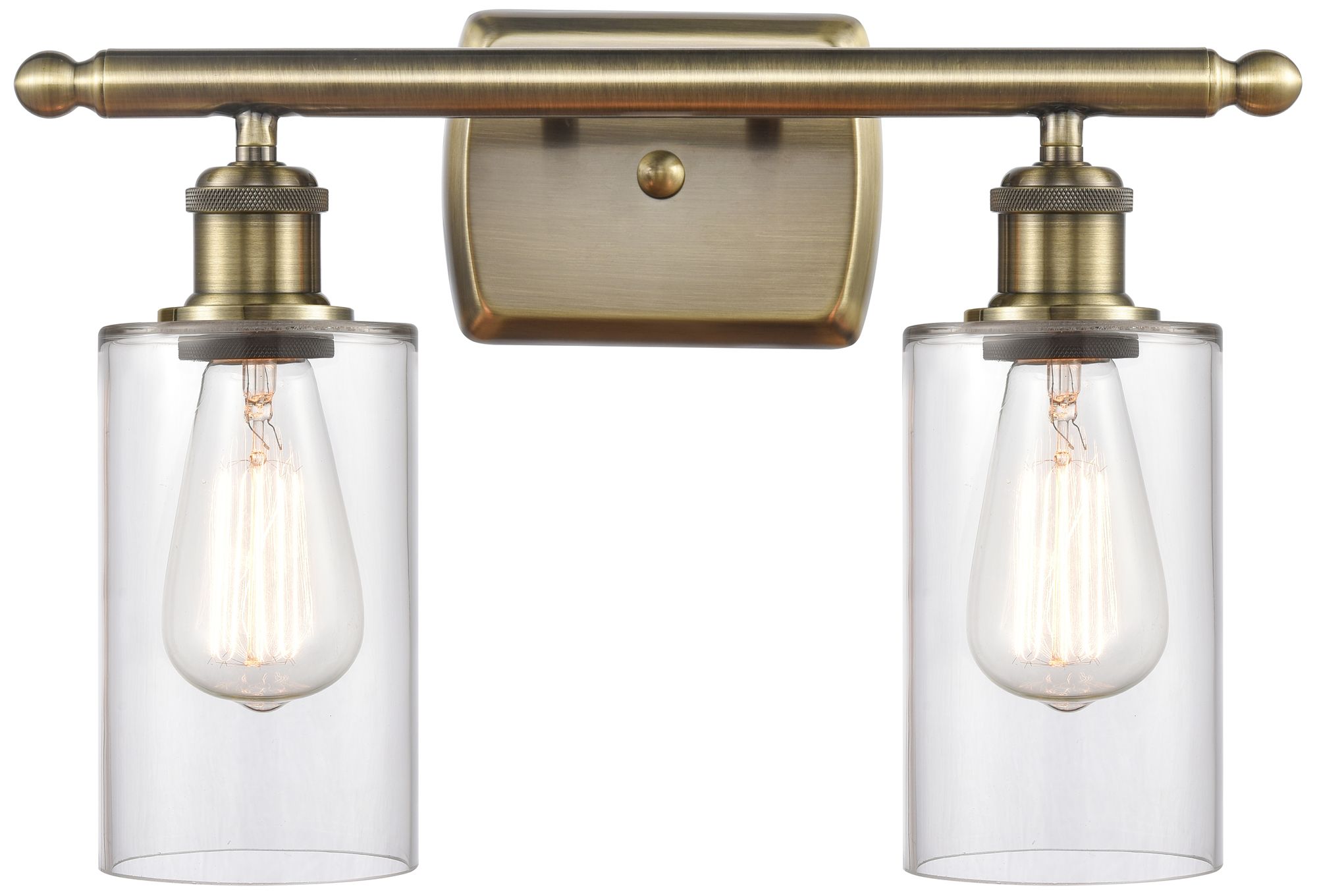Clymer 16" 2-Light Antique Brass Bath Light w/ Clear Shade