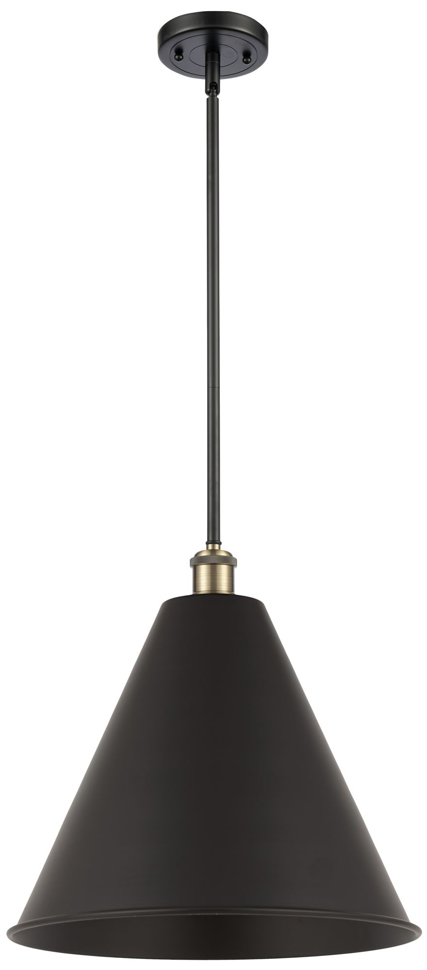 Ballston Cone 16" Wide Black Antique Brass Pendant With Matte Black Sh