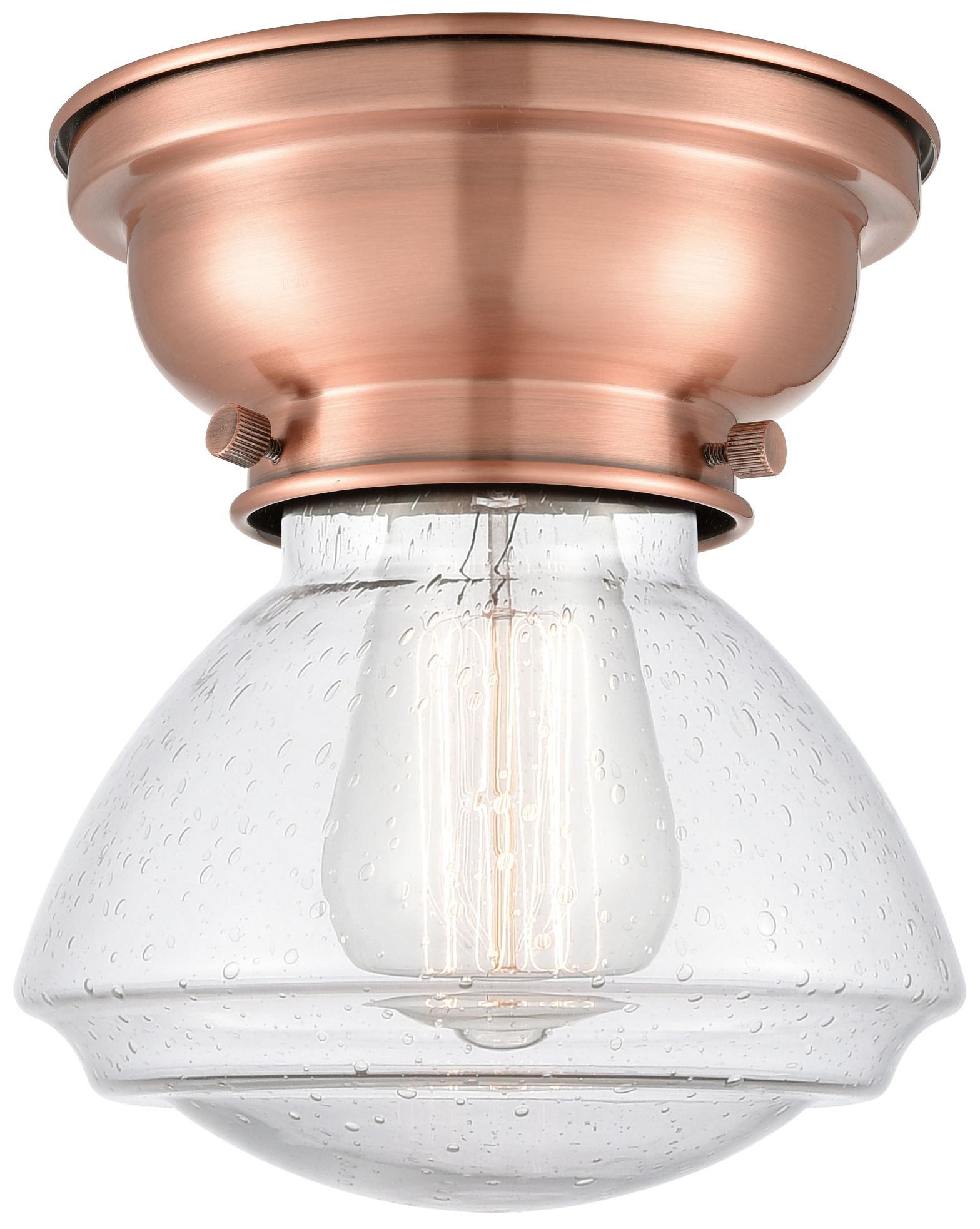 Aditi Olean 7" Antique Copper Flush Mount w/ Seedy Shade