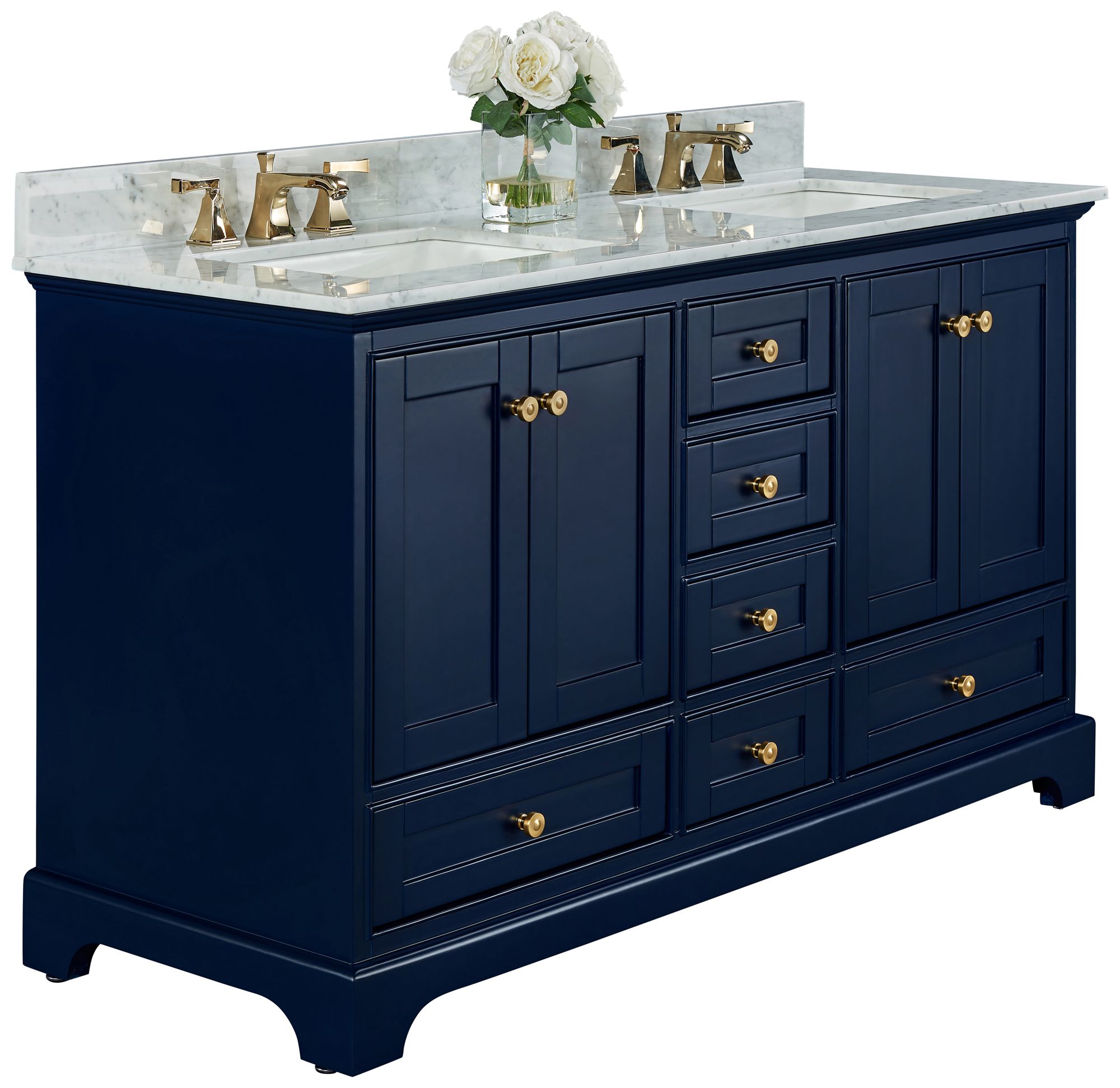 Audrey 60"W Heritage Blue White Marble Double Sink Vanity