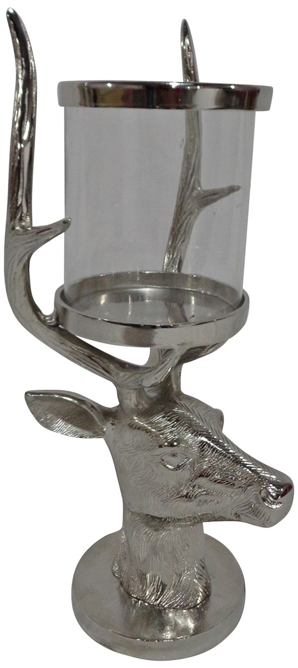 Stag Deer Horn 20" High Silver and Glass Candle Holder