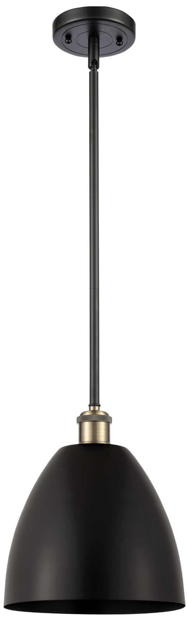 Metal Bristol 9" Wide Black Antique Brass Pendant With Matte Black Sha