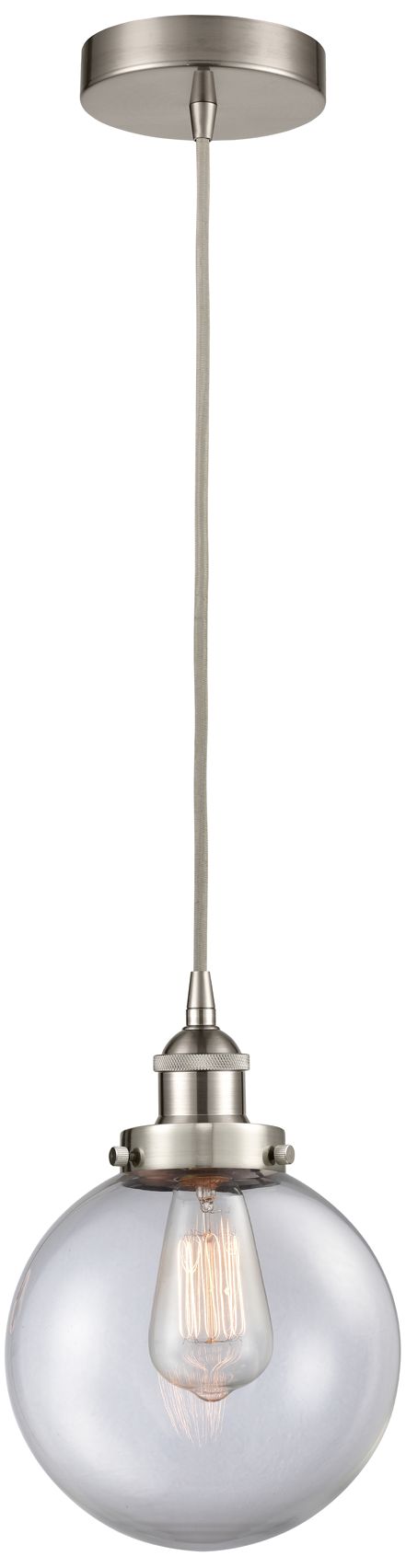 Beacon 8" Brushed Satin Nickel Mini Pendant w/ Clear Shade