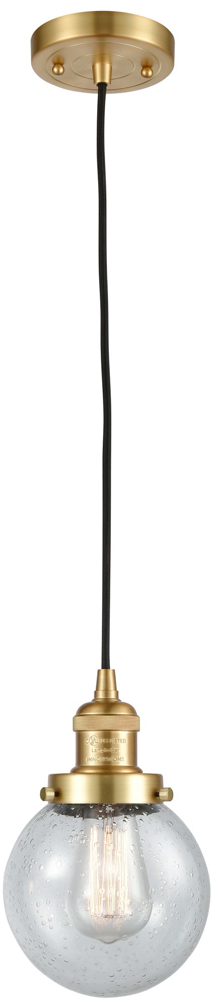 Franklin Beacon 6" Wide Satin Gold Corded Mini Pendant w/ Seedy Shade