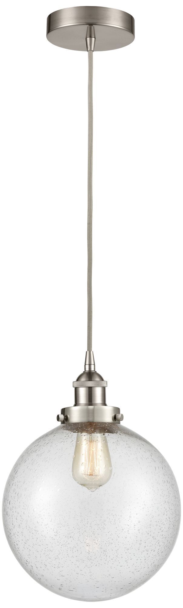 Beacon 10" Brushed Satin Nickel Mini Pendant w/ Seedy Shade